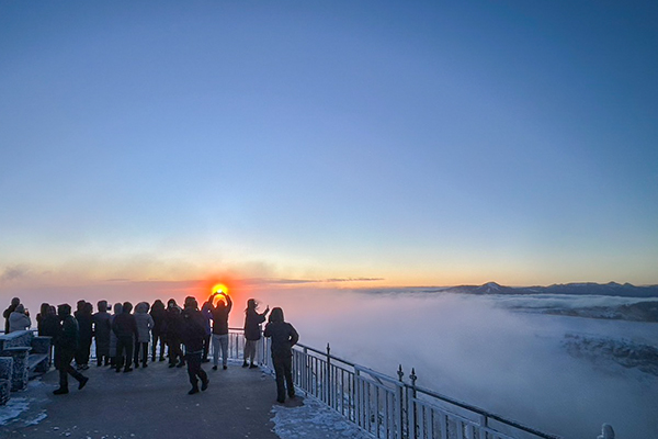 浅間山から昇る太陽