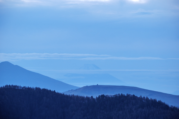 気温 朝:5.2℃ 昼:7℃ 夕方:6℃ 曇天の一日、気温も上がらず肌寒く感じましたが、南斜面では桜が咲き出しました。 牧場の南斜面から見た王ヶ頭・王ヶ鼻 ミネザクラが咲き出しました。例年より10日程早いようです。