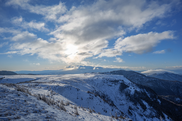 気温 朝:2℃ 昼:16.5℃ 夕方:11℃ 今日は恒例の放牧祭り、年々賑わいを増し今年も大盛況でした。気温が冷え込んだせいで山々の眺望が素晴らしく関東甲信越の代表的な山々が殆どみえました。北側に雲海も発生、遠くに妙高山等が浮んでいました。 美ヶ原ブログで山々のご案内をしています。どうぞご覧ください。 8回目の放牧祭りは好天に恵まれて大盛況、大勢の方が集まり餅つき大会やシカ肉カレーなどで盛り上がっていました。 浅間山を登るご来光。明日あたり山頂に到着しそうです 霜が降り、水溜りには薄氷が張りましたが、無風のせいで左程の寒さを感じませんでした。