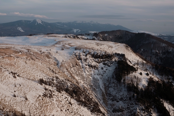 気温 朝:1.3℃ 昼:9.8℃ 夜:4.5℃ 北アルプスに沈む夕陽 日の出の頃の乗鞍岳 夕方のテラス