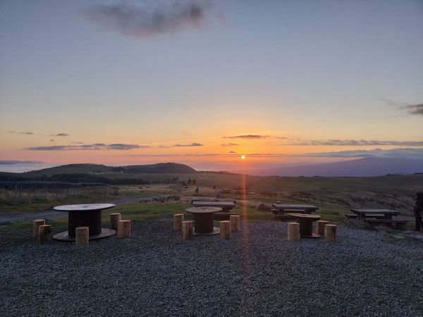 日の入りの頃になって北側に雲海が発生、雲の上に北アルプスが浮かび面白い夕景となりました。