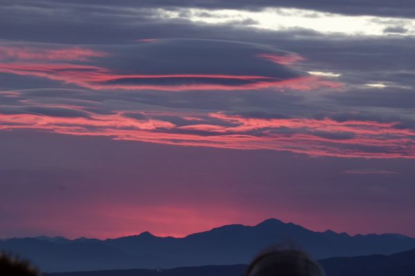 雲間から覗く太陽。高原はぼんやりとシルエットが見えるにとどまりました。