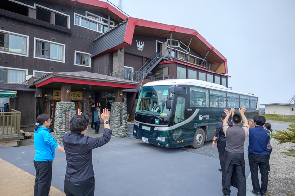 11時15分、松本駅にお帰りになるお客様を乗せたバスが出発する頃。
