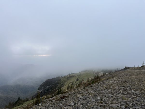 日の出前から終始雲の中、チェックアウト前から晴れ始め、夕日の頃には雲に飲まれました。