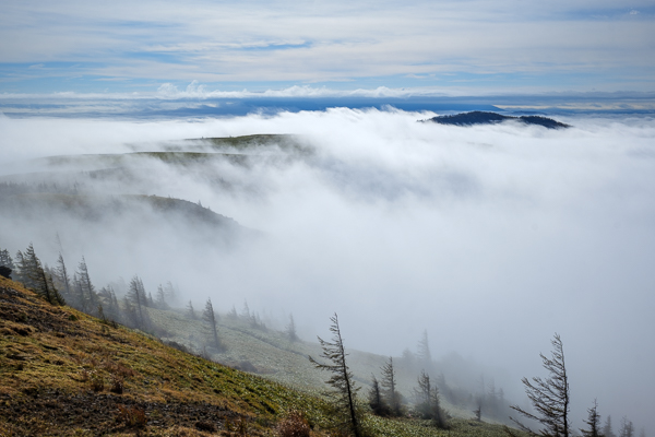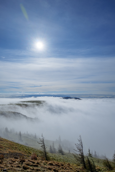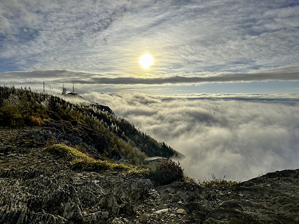 8時34分、ゆっくり上る秋の太陽がようやく雲の上に出た頃、周囲には雲海が広がっていました。