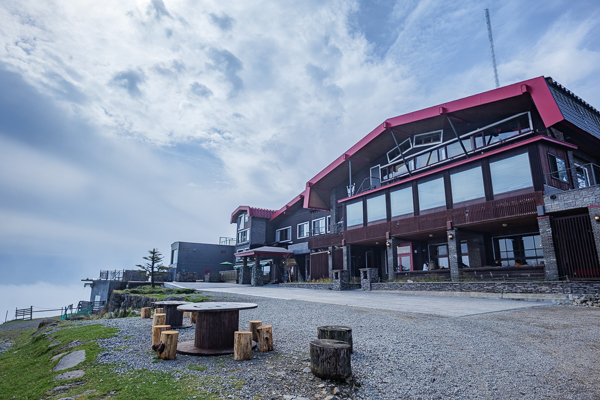 日の出の頃は雲に包まれていましたが、6時33分、部屋で朝食を取っていると急に空が明るくなり、高原が雲から抜け始めました。