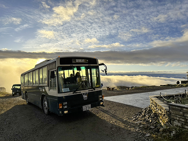 こちらは王ヶ鼻展望ツアーに出発するバスの様子。