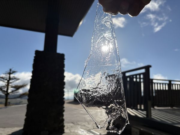 朝の気温はマイナス!高原には霜も降りて、玄関前のバケツの水も凍りました!