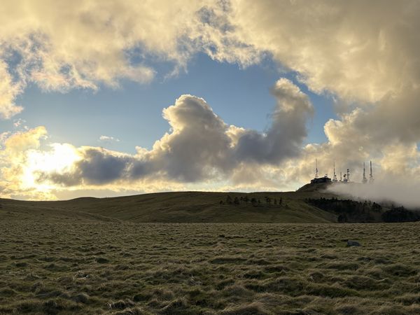 最後は夕焼けに照らされ、金色になった雲と王ヶ頭ホテル。