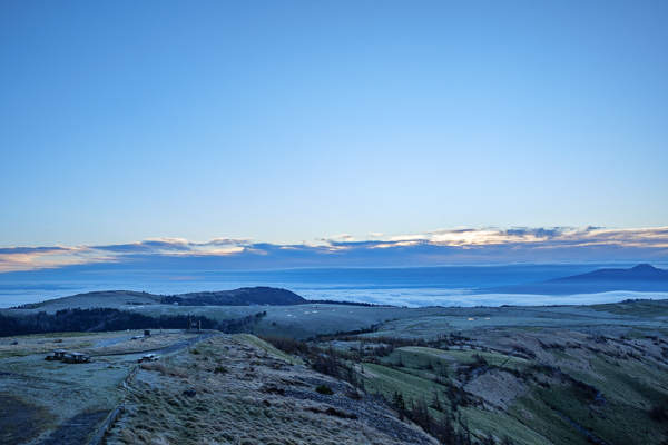 こちらの山の上の雲も、少しだけピンクがかって見えました。
