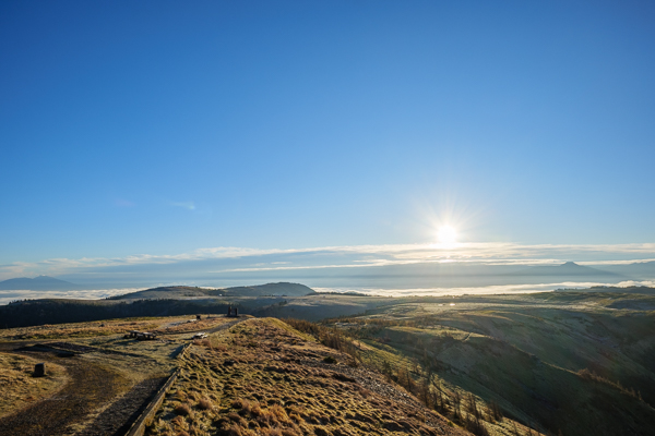 日の出の稜線に帯のような雲が広がっていたため、モルゲンロートまでは至らなかったですが、