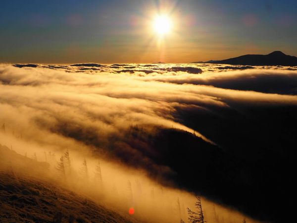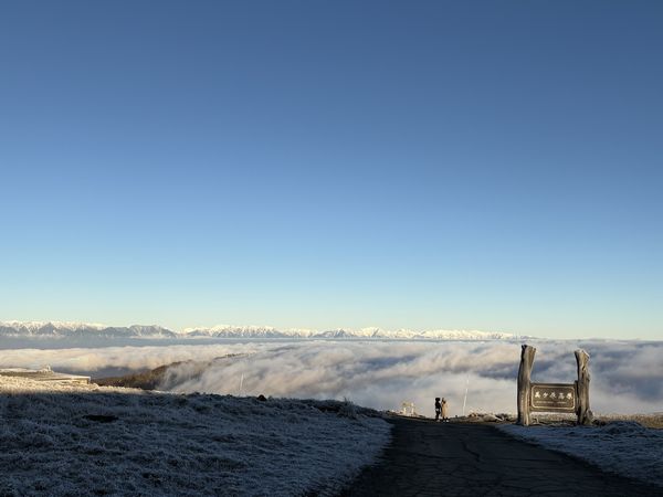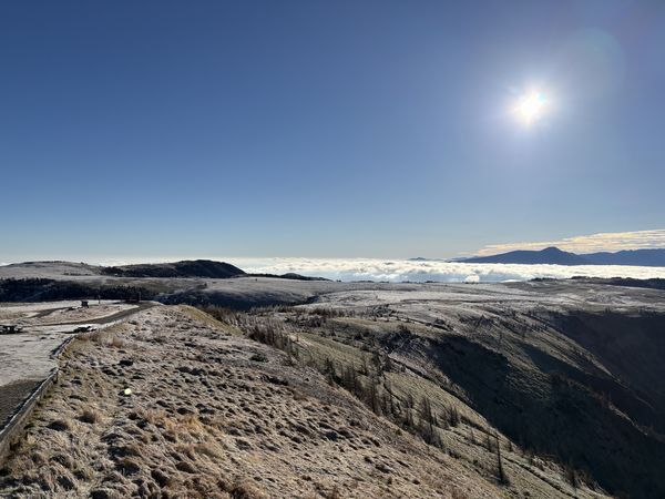 少しずつ雲が下がっていき、霜が降りた高原が姿を現しました!