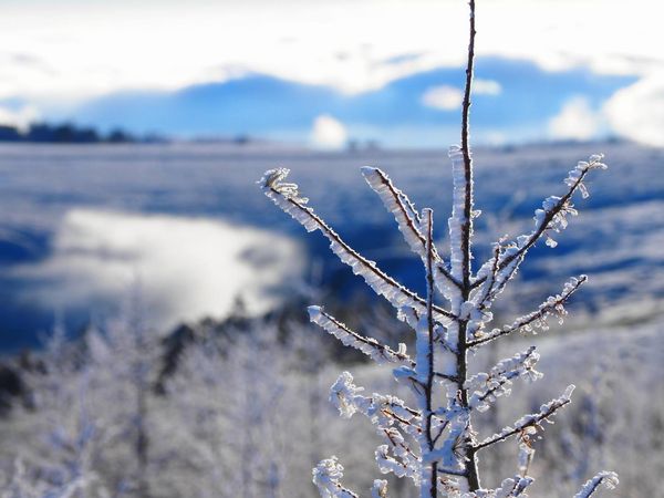 木に霧氷がしっかりと付着し、今日の冷え込みを表す1枚。
