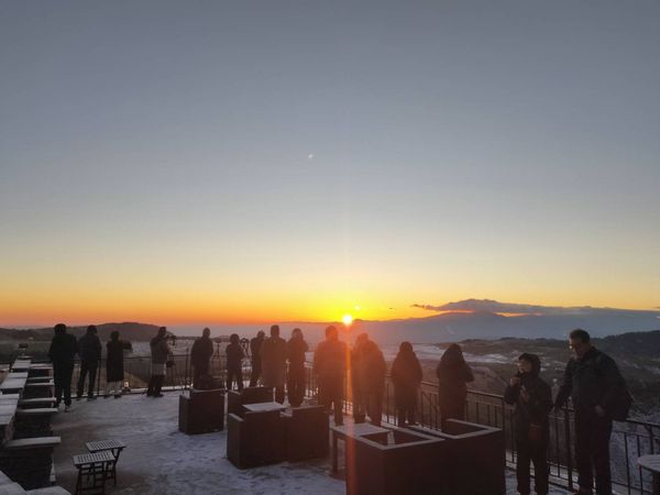 昨夜からの輝く星空を引き連れながら、朝を迎えてのご来光。