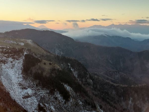 八ケ岳には少し厚い雲がかかっていますが、南アルプス、富士山は綺麗に見えています。