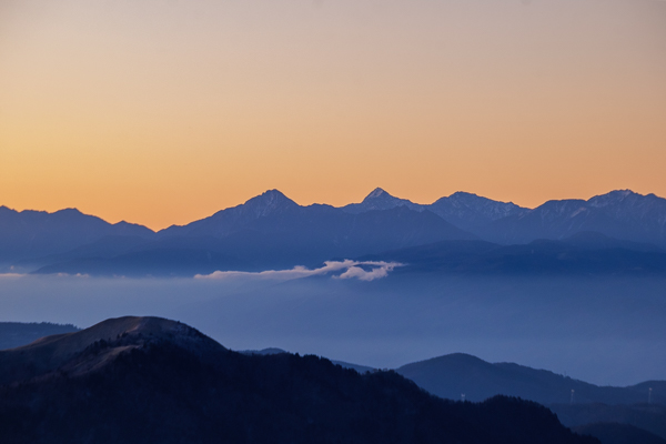 16時37分、マジックアワーの白馬三山。