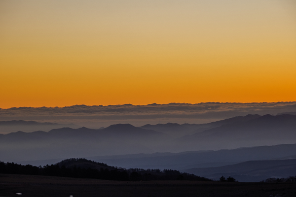 6時15分、日が昇る稜線付近には雲の帯が広がっいました。
