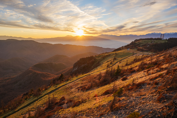 6時37分、再び展望テラスより、朝日が昇る高原全体の風景。