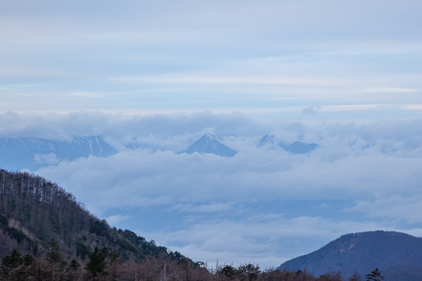 北アルプスは雲の中。