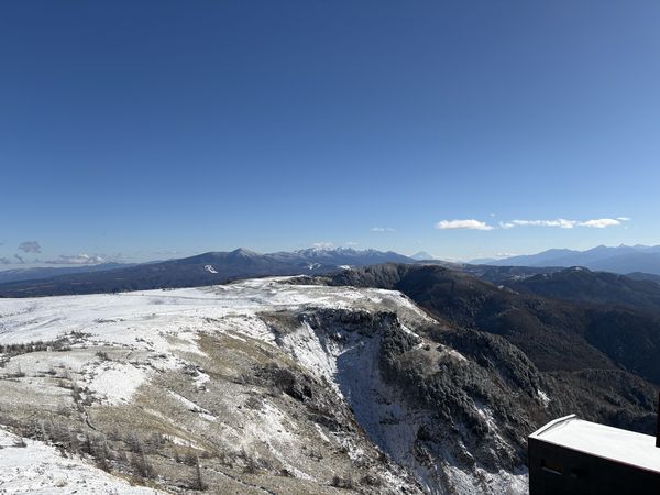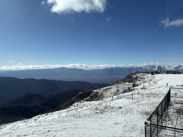 冠雪の八ヶ岳、富士山、南アルプスが綺麗です。