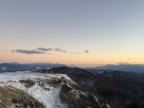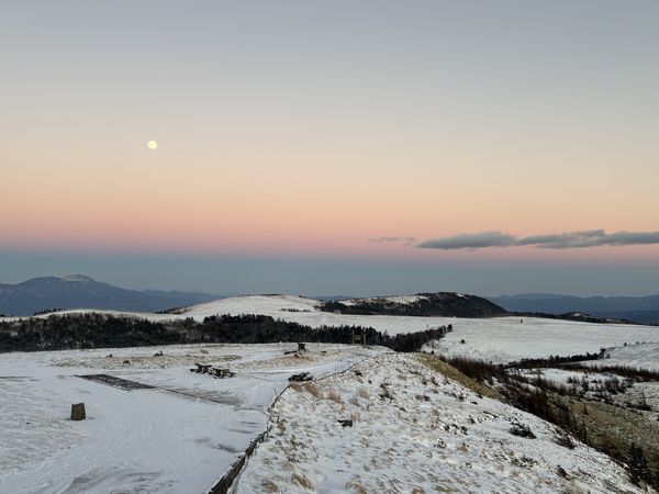 昼に撮った2枚前の写真と比べると高原の雪が解けているのが分かります。