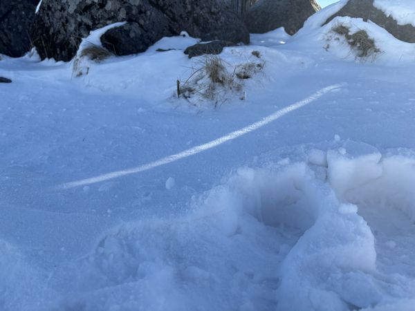 日が当たり雪が解け、地面が見えている箇所もありますが、日陰の吹き溜まりでは10~15cmほど雪も残っています。