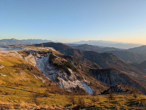 美ヶ原は予報通り快晴。景色は時間帯によって、白、青、緑、オレンジ。