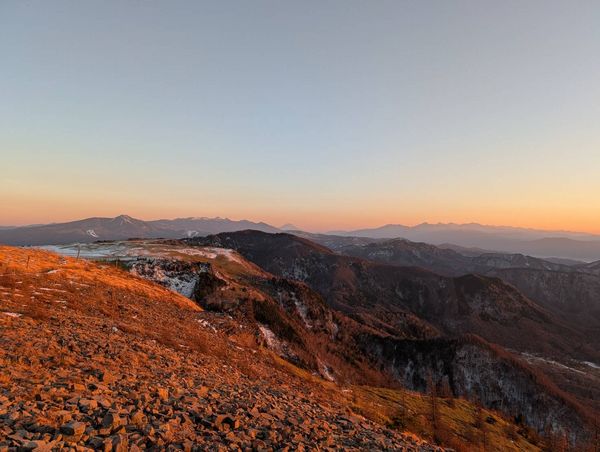 山の稜線から空へかけてのグラデーションが美しいです。