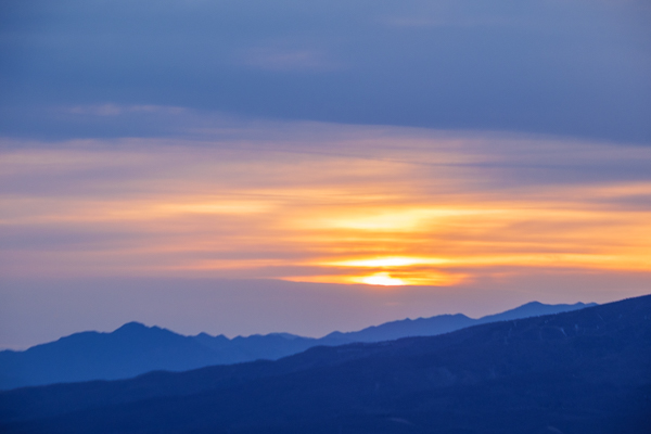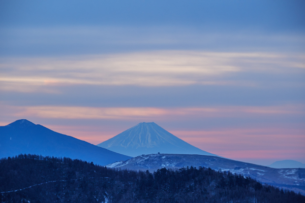 太陽が昇る稜線から富士山にかけては、雲のすき間に朝焼けが広がっていました。
