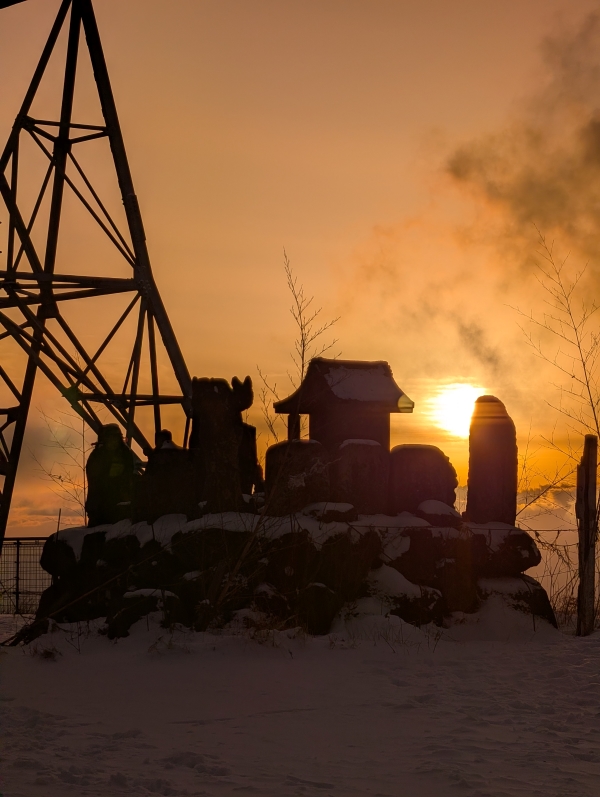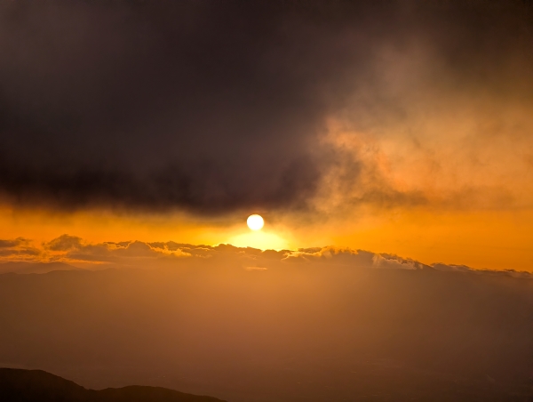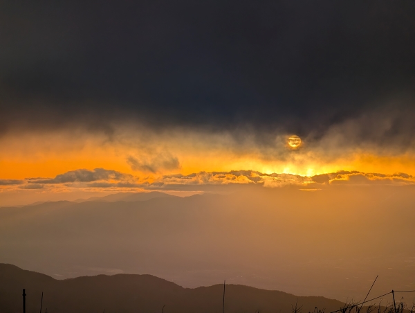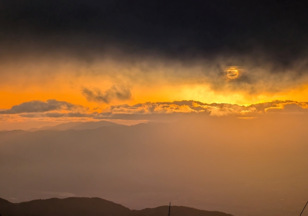 まぁ、そんなことはさておき、望遠鏡で覗いた木星のような模様が太陽に付いていて面白い夕日でした。