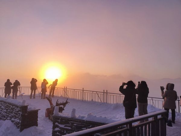 お次は夕日。山の稜線に雲はありながらも綺麗に見ることができ、寒い中たくさんのお客様がおられました。
