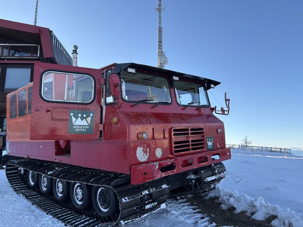 派手な色の雪上車が青空に映えます!みなさま楽しんでおられたようです!