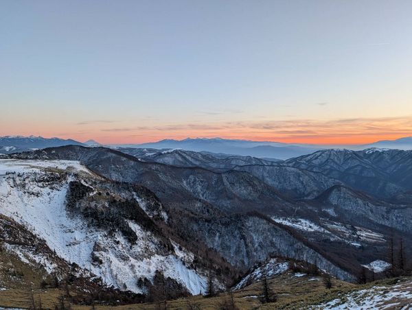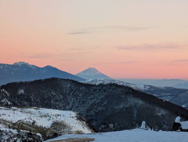 日中は快晴、浅間山、八ヶ岳、富士山、南アルプス。