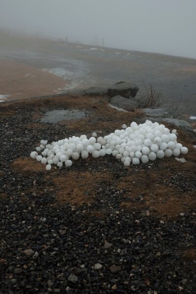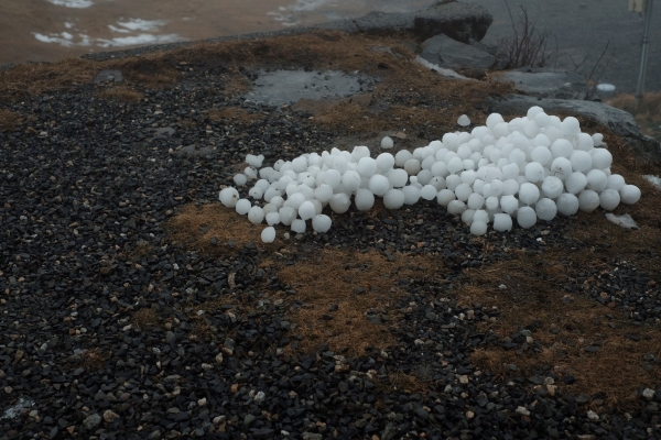 こちらも水に還りつつありますが、雪玉のピラミッド▲