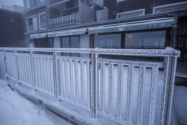 こちらはCafe2034の北側の窓に出来た霜の華。