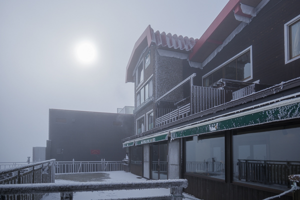 王ヶ頭ホテルの霜の華は、皆さんに喜んで頂けるように夜のうちに加湿器をかけて、より沢山の霜を付けることがあります。