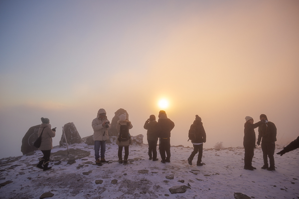 16時22分、お散歩バスツアーから戻ったお客様は、山頂へ直行。