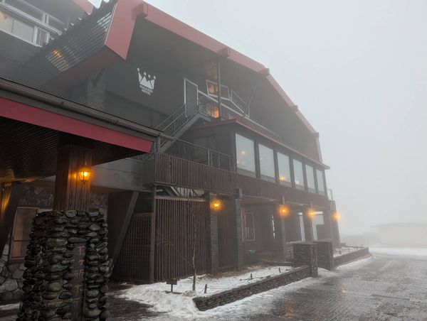 雲中のホテル。雪も雨のせいでシャーベット状に。
