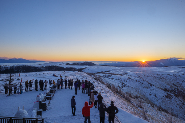 展望テラスに集まって、初日の出をご覧になる皆さん。