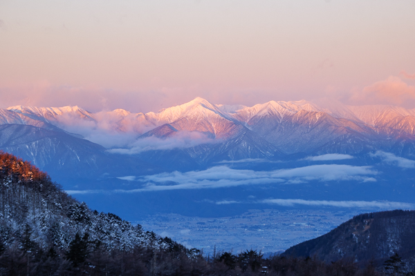 今朝は常念岳がモルゲンロートに染まり、とても綺麗でした。
