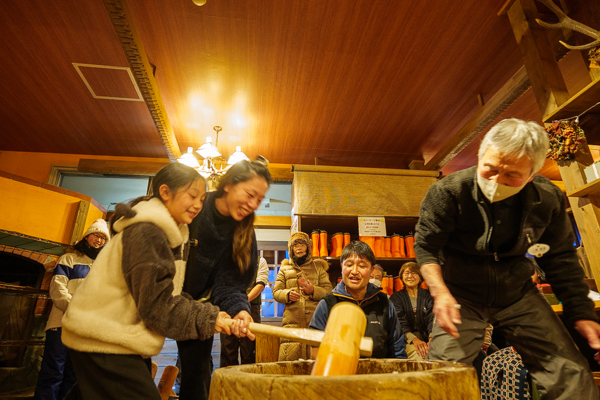 ホテルでは、初詣や雪上車体験ツアー、餅つきなどのイベントが行われ、