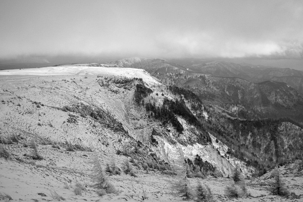 15時30分、ちょうど高原やホテルがある標高までは雲から抜け、その上に覆いかぶさるように広がる冬の雲。