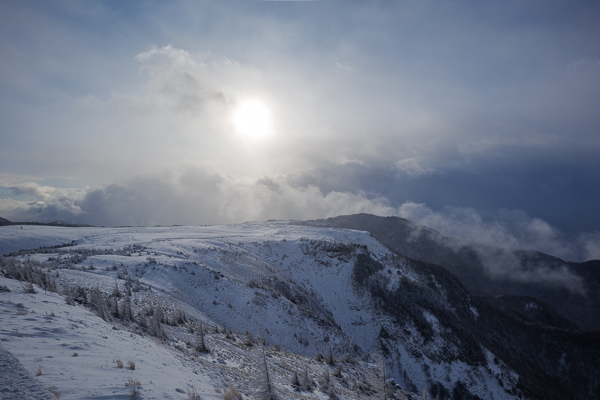 所々地面が出ていた高原は、再び真っ白な大地に戻っています。