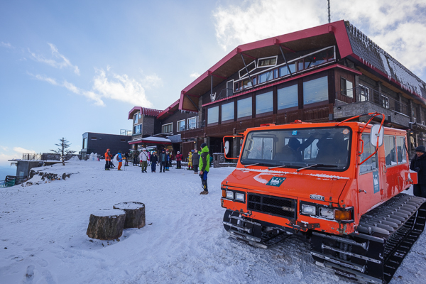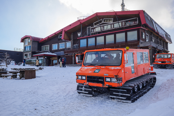 15時38分、出発前の雪上車の向こうには、本日のスノーシュー教室に参加される皆さんが集まっていらっしゃいました。