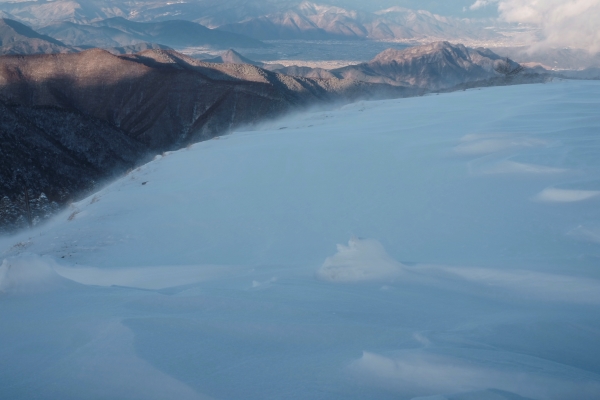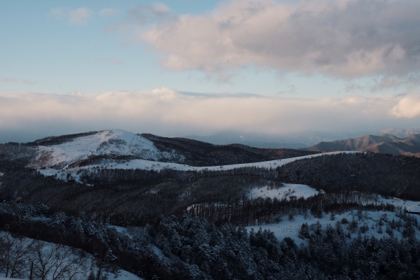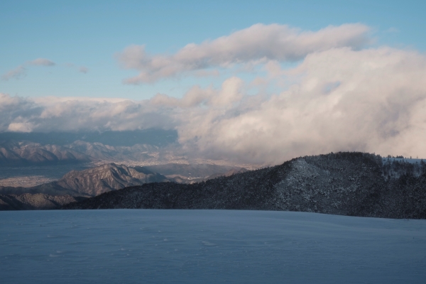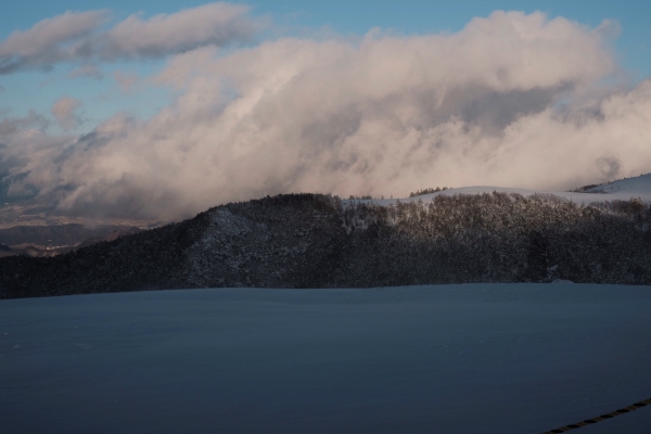 美ヶ原から見えるアルプスはまだ雪雲のなか・・・