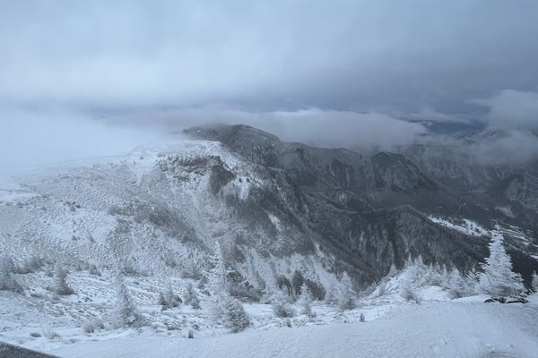 昨日までの笹や芝が見えた高原が噓のよう!既に真っ白です。