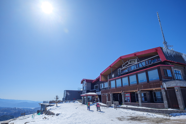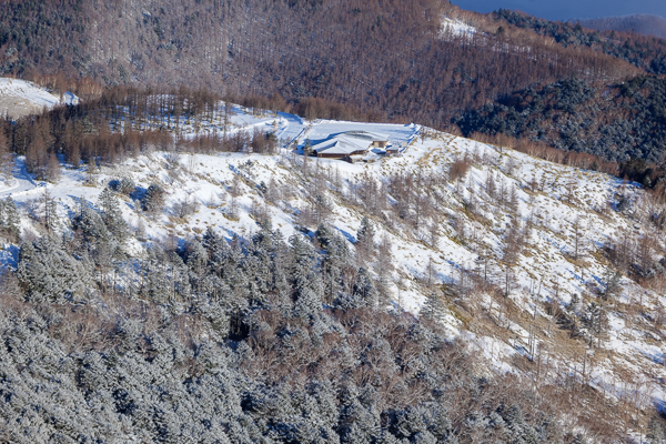 12時16分、そり滑り用の雪の滑り台の上から撮ったホテル全景。