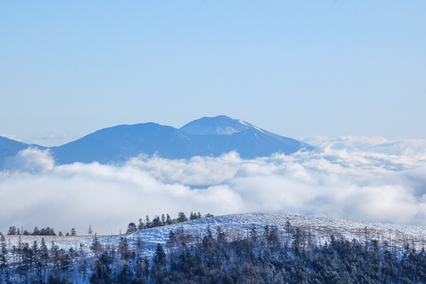 こちらは浅間山。麓を雲が覆っています。