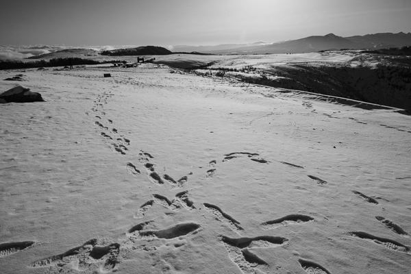今年は雪が少ないため、スノーシューなしでは歩けないような深い積雪はありません。