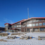 12時16分、そり滑り用の雪の滑り台の上から撮ったホテル全景。